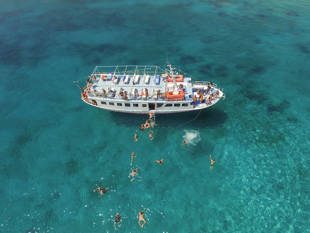 Embark on an unforgettable Naxos Coastal Adventure departing from the scenic Agia Anna port at 09:45 and returning at 17:30. Sail along the picturesque Naxos West coast, reaching our first destination in approximately 1.5 hours: Ag Sozon. Dive into the azure waters and explore the cliff-side Ag Sozon chapel, steeped in fascinating history. Legend has it that this chapel was built by a grateful merchant who survived a shipwreck with a vow to construct a chapel dedicated to oil and wine, hence its name.